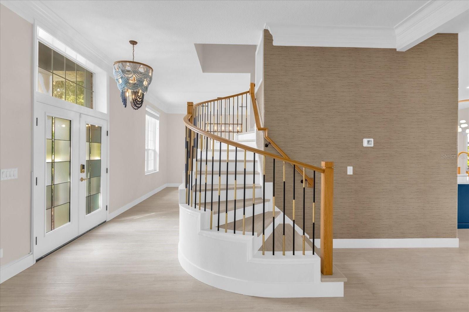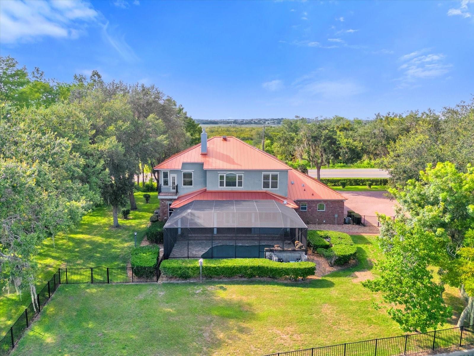 Entering the home through elegant double glass doors, you are immediately drawn past the exquisite staircase to breathtaking views of Lake Minneola. The entire home has been meticulously remodeled from the roof to the floors. A brand-new copper metal roof with a 50-year warranty crowns the property. The state-of-the-art kitchen features top-of-the-line appliances, including a Miele coffee machine, Miele Multiuse oven/microwave, La Cornue Induction top, and double oven. With a large Monogram cabinet fridge and Freezer, two enormous islands, a huge walk-in butler pantry, and a wet bar, this kitchen is perfect for entertaining guests.